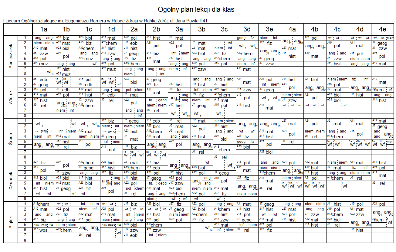 – Plan lekcji